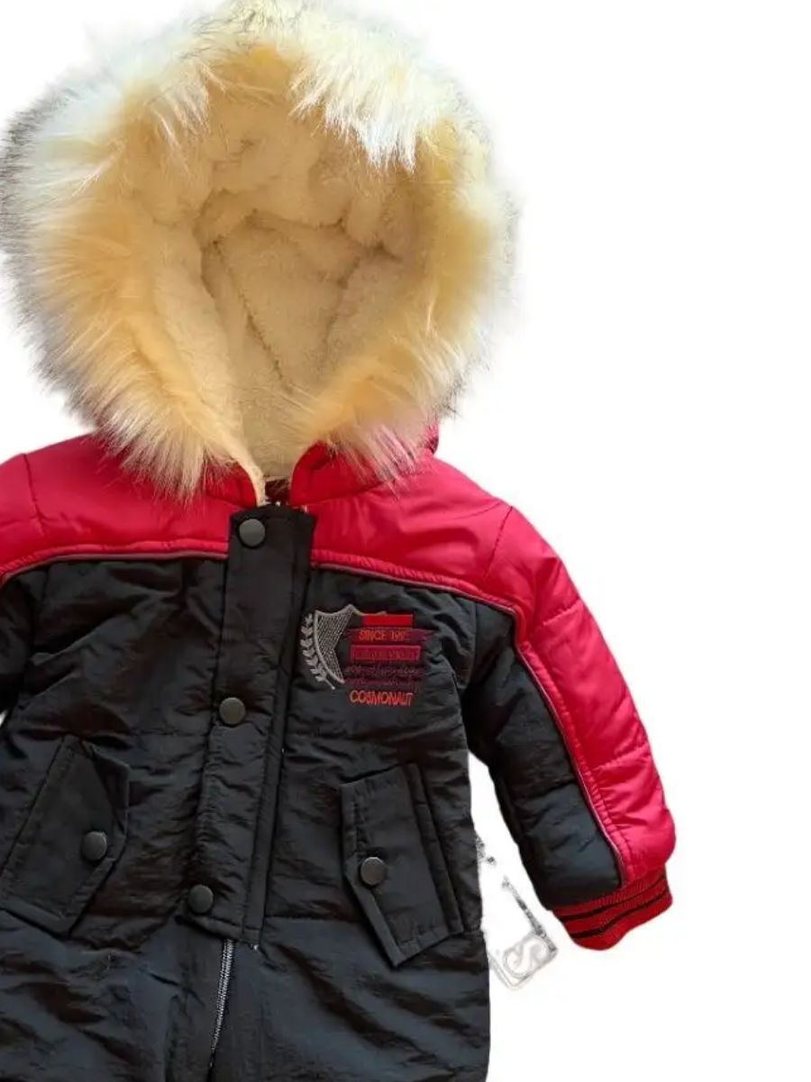 Зимний комбинезон для малышей от SOSO. Утеплен синтепоном, который прошел сертификацию RDS, очень легкий и теплый (от +10 до -10 градусов). Комбинезон с капюшоном и опушкой из искусственного меха. В качестве подкладки использовался комфортный для малышей материал. В зависимости от возраста ребенка, Вы можете выбрать размер.По низу ножек и ручек теплые отвороты. По краю капюшона эластичная резинка для плотного прилегания к лицу и защиты от ветра и снега. В комплекте несъемные резиновые штрипки, которые надеваются поверх обуви и позволяют не задираться штанине. Имеются световозвращающие элементы.