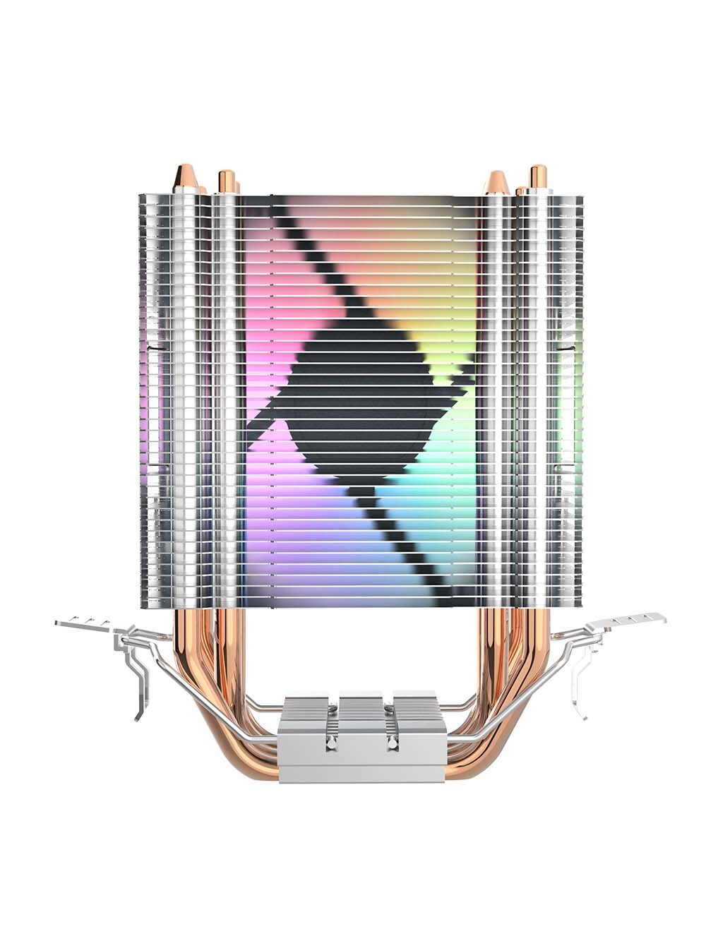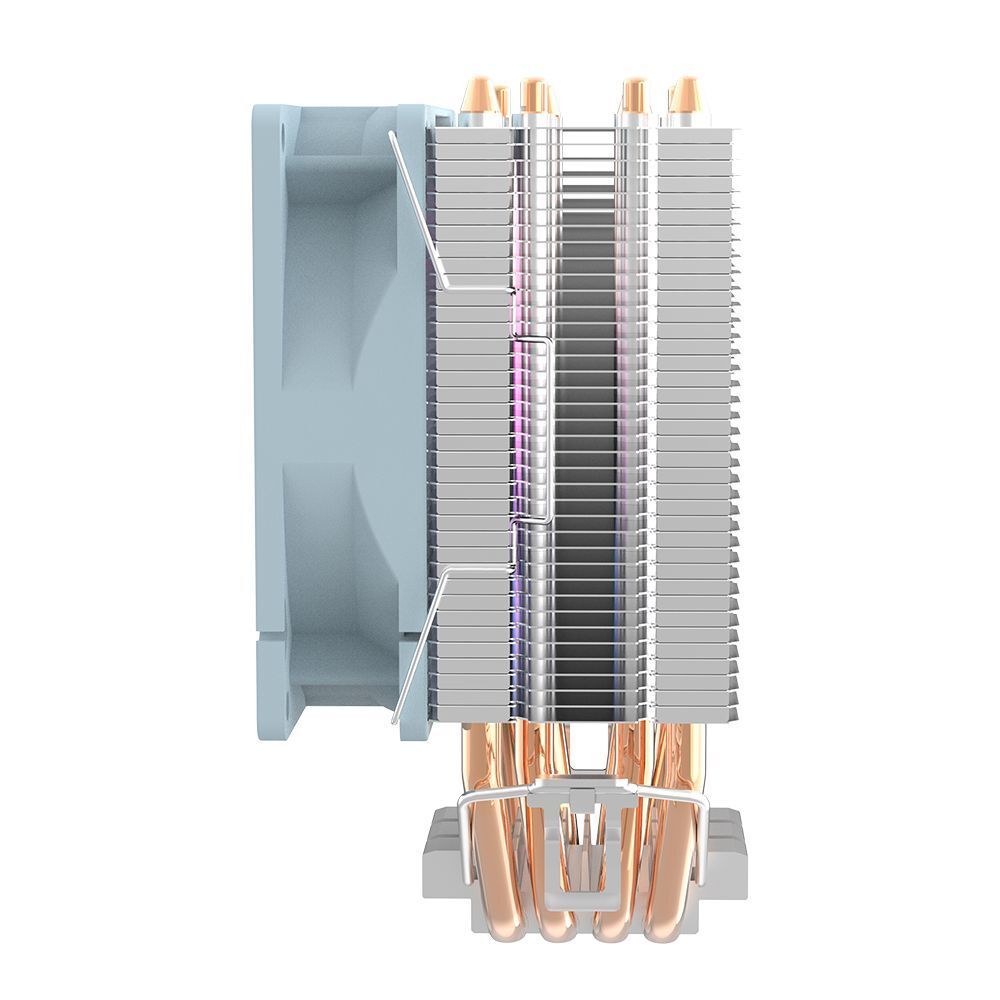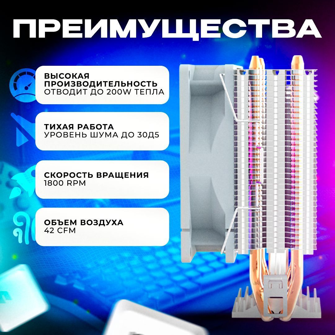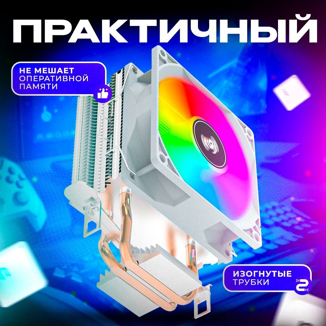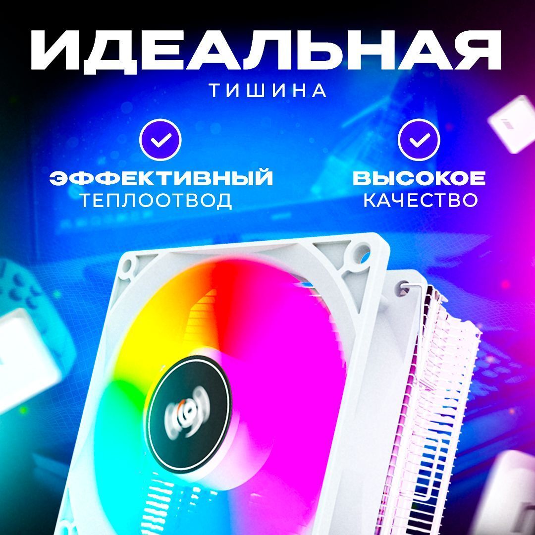 Вместе с тем, семилопастный вентилятор диаметром 90 мм обеспечивает стабильный поток воздуха, способствуя быстрому охлаждению процессора, а благодаря RGB-подсветке ваш компьютер обретет яркий и стильный вид, гармонично вписываясь в интерьер как игровых, так и профессиональных установок. Мягкое свечение подчеркивает внешний вид ПК и позволяет наслаждаться эффектной настраиваемой подсветкой во время работы.