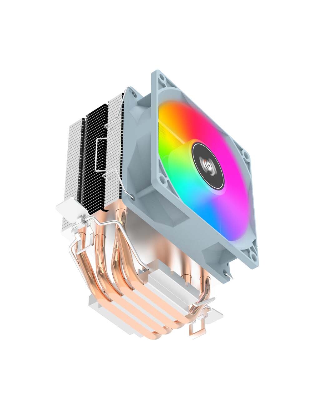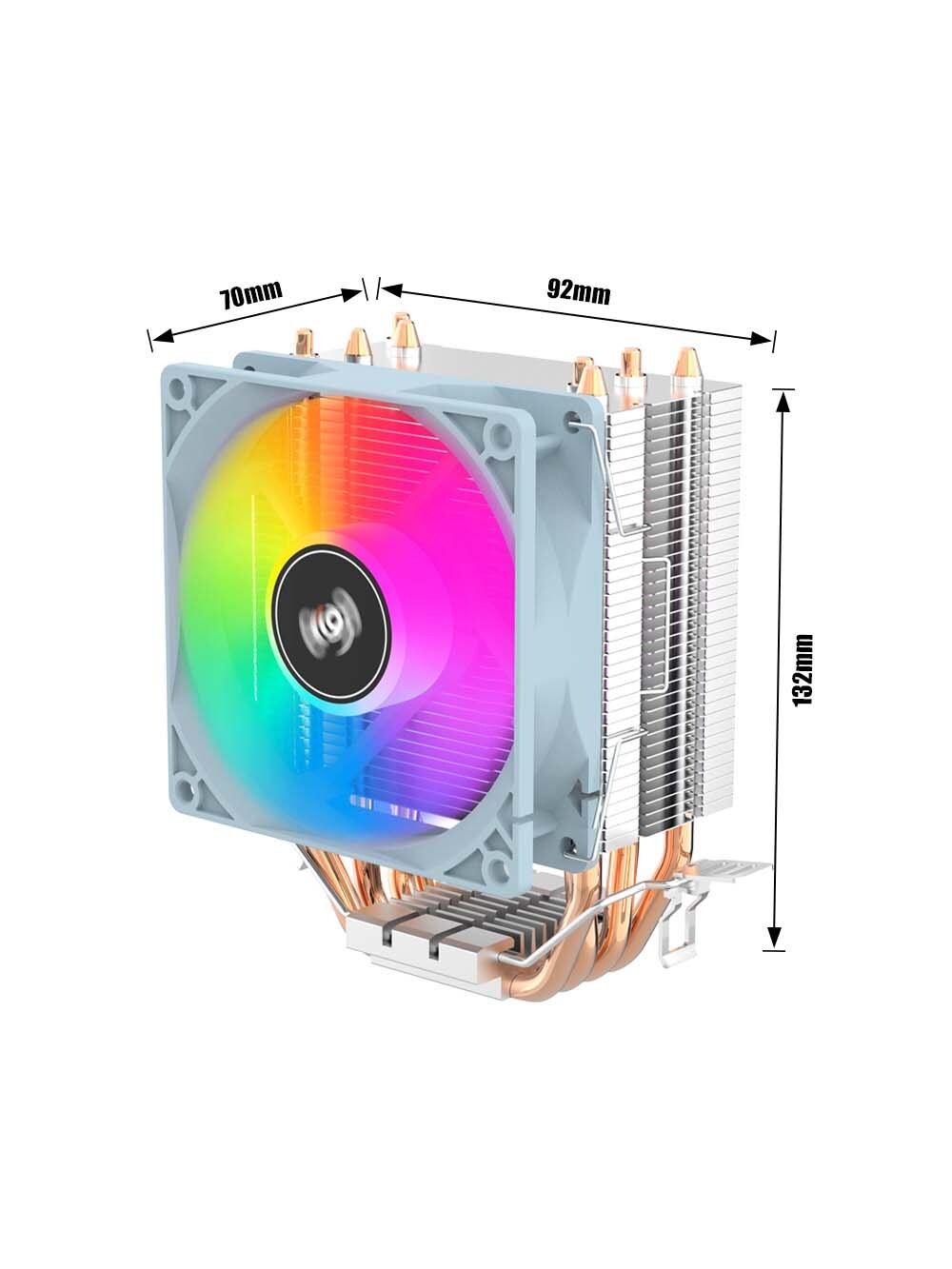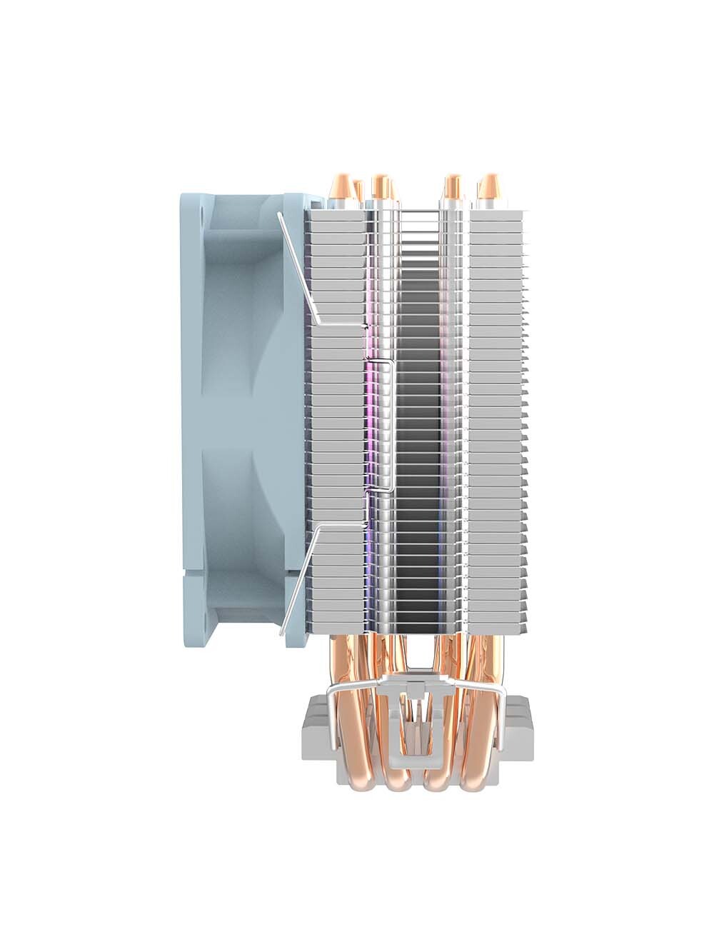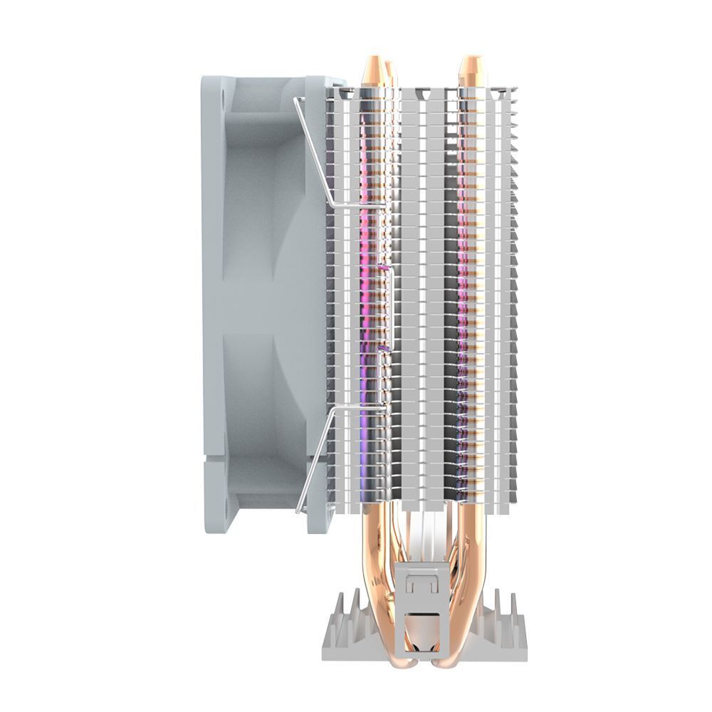 Вместе с тем, семилопастный вентилятор диаметром 90 мм обеспечивает стабильный поток воздуха, способствуя быстрому охлаждению процессора, а благодаря RGB-подсветке ваш компьютер обретет яркий и стильный вид, гармонично вписываясь в интерьер как игровых, так и профессиональных установок. Мягкое свечение подчеркивает внешний вид ПК и позволяет наслаждаться эффектной настраиваемой подсветкой во время работы.