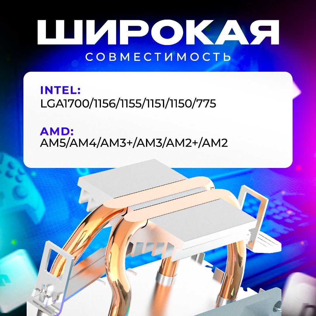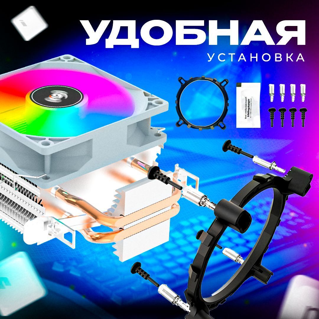 Также, башню очень легко установить- эргономичная застежка и система креплений обеспечивают простоту и скорость монтажа. Держатель кулера крепится легко и надежно, что делает его идеальным для самостоятельной установки. А благодаря питанию от коннектора 3-pin и стандартному напряжению 12В, кулер подходит к широкому спектру материнских плат и не требует сложной настройки.