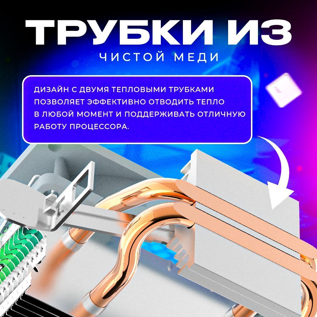 Благодаря компактным размерам, Aigo ICE 200 PRO позволяет сэкономить пространство внутри корпуса, что особенно актуально для сборок с ограниченным пространством. При этом высокая мощность кулера и качественные материалы гарантируют, что даже при своем небольшом размере он справится с охлаждением процессоров мощностью до 95 Вт, а качественные элементы, такие как алюминиевые ребра радиатора и медные тепловые трубки, делают его долговечным и надежным решением для охлаждения процессора.
