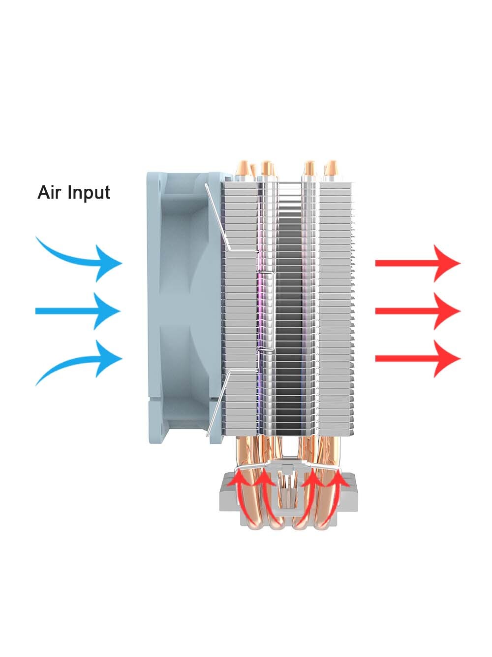 При этом, для повышения эффективности теплоотвода Aigo ICE 200 PRO оснащен двумя тепловыми трубками, выполненными также из чистой меди. Медь в конструкции трубок значительно ускоряет процесс отвода тепла, повышая общую производительность кулера.
